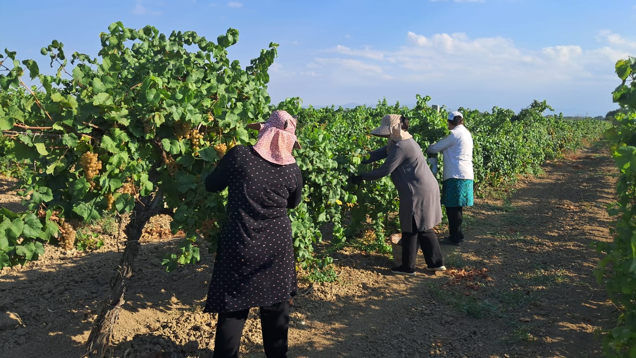 Общая площадь виноградников в районе составляет 1113,1 4 гектаров, из них плодоносящие 1017,14 . Виноградари в основном выращивают  сорта, наиболее адаптированные в наших природно - климатических условиях. При этом выращивают не только технические, но и столовые сорта – различного периода созревания и цветов, а это в совокупности позволяет обеспечить янтарной ягодой жителей района, республики и страны вплоть до октября. Труженики виноградных плантаций в эти дни проводят  выборочную  уборку винограда столовых сортов. Выборочный сбор винограда – это частичная уборка урожая со снятием отдельных гроздей, достигших  зрелости .  Следует отметить, что виноград зреет неравномерно –  потому проводят уборку в несколько этапов по мере их зрелости и степени спелости.  Виноградари района пока собрали около 30 тонн столовых сортов  винограда и реализовали в свежем виде в торговых сетях района и республики . Это всего лишь начало. Основные работы еще впереди.  Массовый сбор, в том числе и технических сортов, стартует в конце августа и в начале сентября, в зависимости от погодных условий. Для  реализации урожая  –  виноградари района заблаговременно заключили договора поставок с Кизлярским коньячным заводом.- Сельскохозяйственный год по выращиванию винограда был нелегким. Несмотря на аномальную жару и засуху,  опытным виноградарям  района удалось, вырастить неплохой урожай солнечных ягод и защитить их от болезней и вредителей. В своей производственной деятельности  виноградари района, действительно  ежегодно добиваются результаты в сторону увеличения. По прогнозам специалистов урожайность янтарной ягоды и ее валовые сборы ожидаются выше прошлогодних показателей, хотя в прошлом году  вырастили не плохой урожай – это 155 ц/га и  15685тонн соответственно. Следует отметить, что  работники  сельскохозяйственного производства знают, что важно не только вырастить хороший и качественный  урожай, но и быстро, без потерь собрать его.  Поэтому в хозяйствах  полным ходом идет подготовка к массовой уборке винограда. В планах, для развития  отрасли осенью произвести посадку новых виноградников еще на площади 145 га, а это рост валового сбора винограда  подчеркнул главный специалист УСХ Рашид Идиков.
